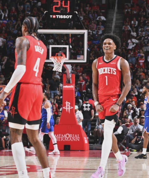 而現在,火箭隊則有了3巨頭,所謂的3巨頭就是杜蘭特、申京與阿門湯普森,在范弗里特賽季報銷的情況下,火箭隊只能給阿門更多的機會,讓他去充當控衛。但4場比賽下來,阿門的數據不難看,可是他在外線確實沒有什么威脅,三分球到現在為止是一個沒中,這就是阿門的最大短板。